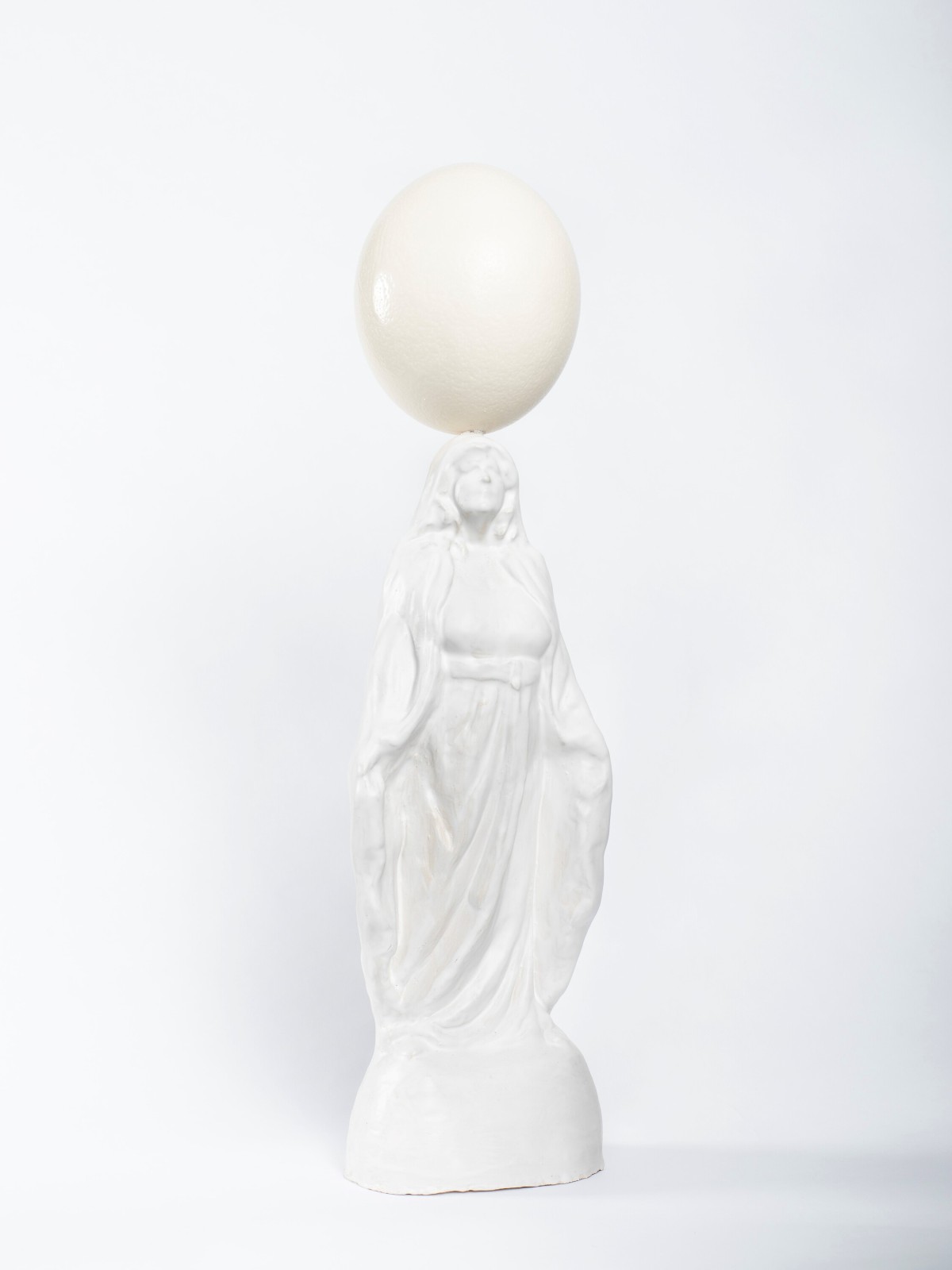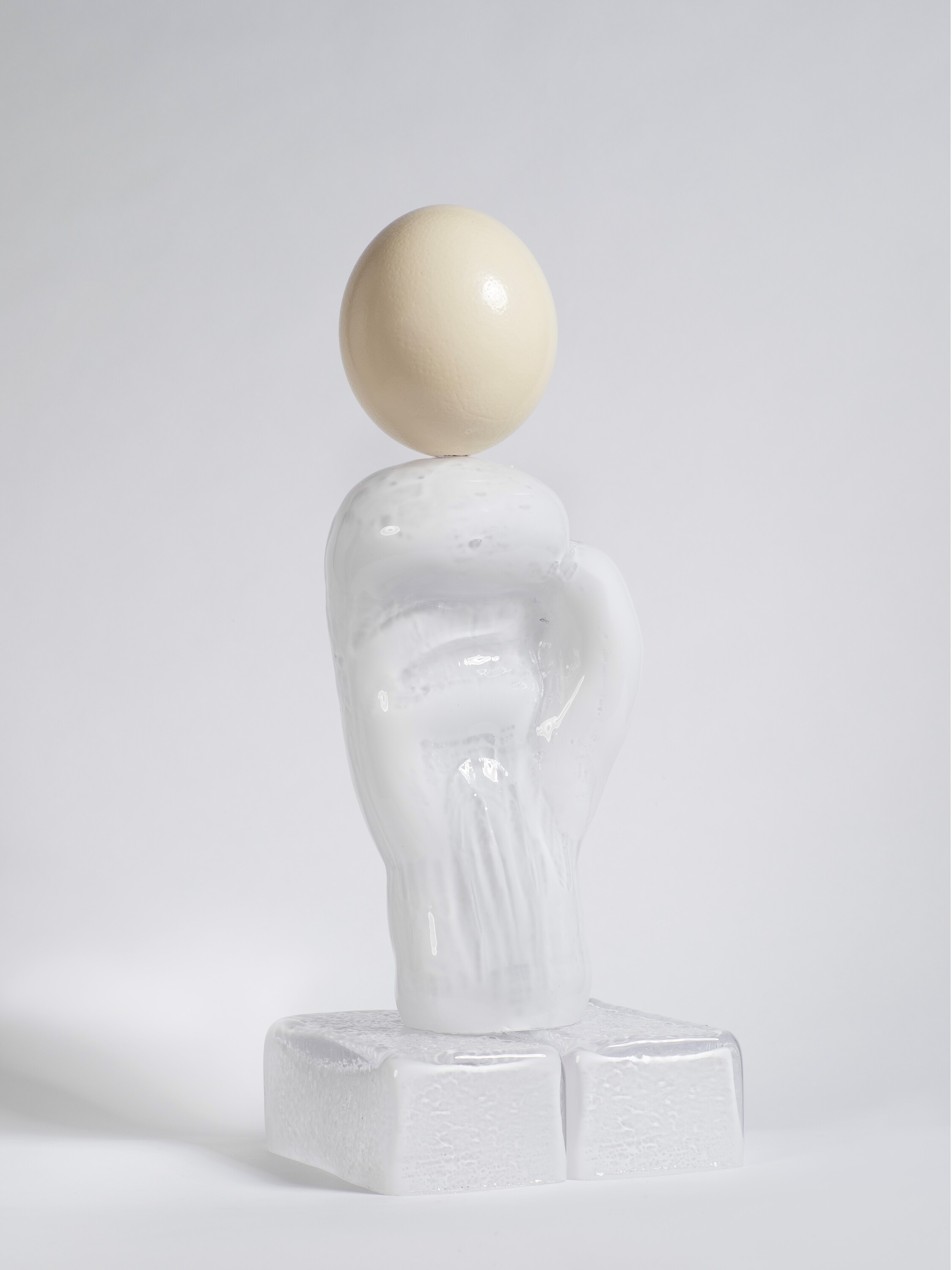 Gijs Assmann, Foreshadowing XIX, 15 × 17 × 61 cm, ceramics, ostrich egg