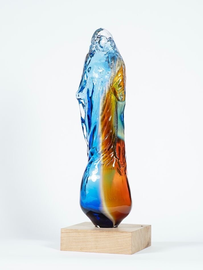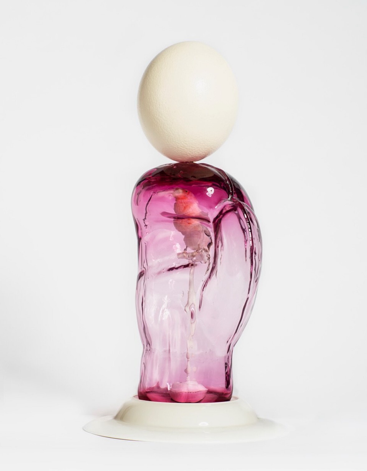 Gijs Assmann, Flash (III), 2025, Glas, struisvogelei, 61 x 22 x 22 cm.