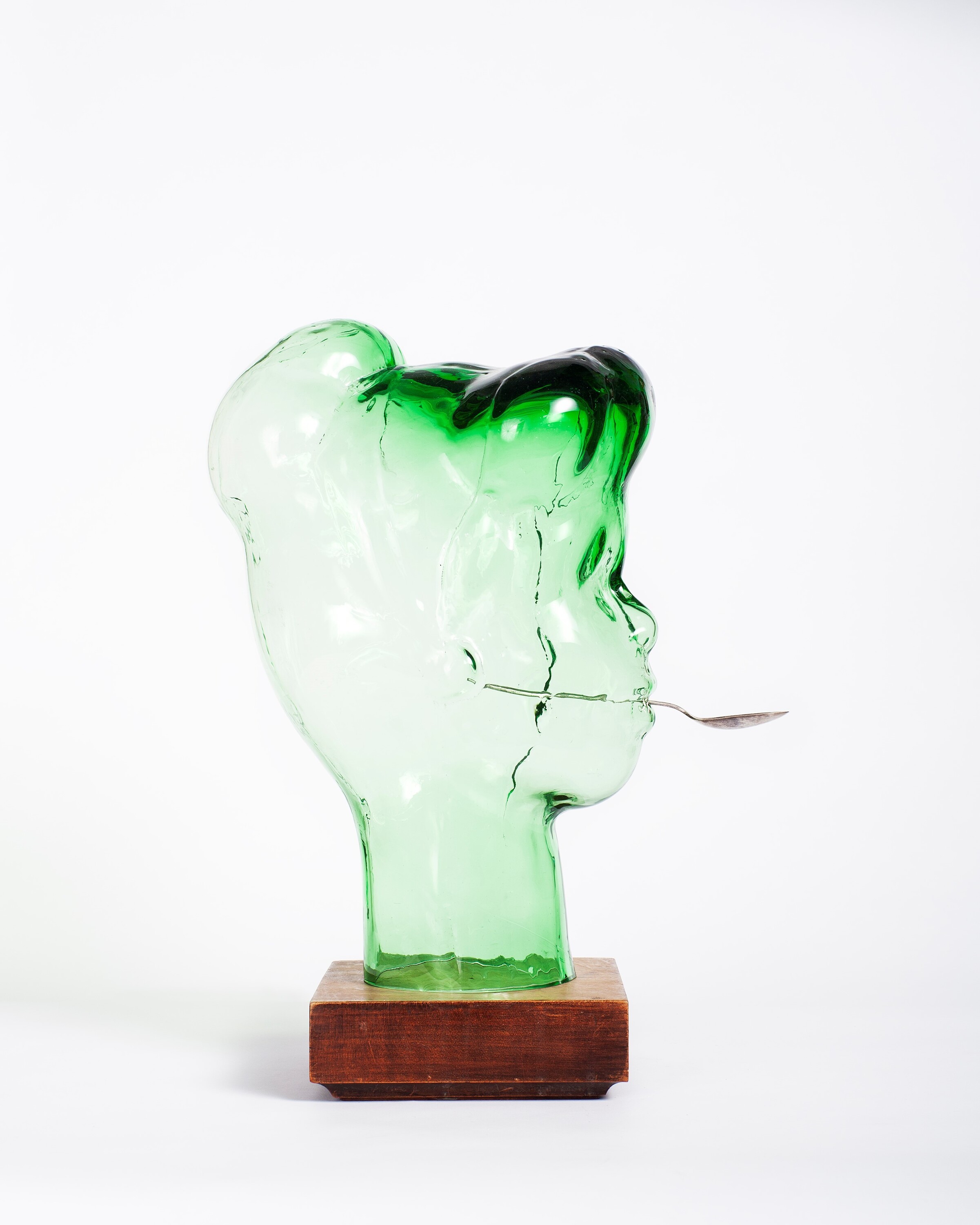 Gijs Assmann, Culture of Happiness (II), 46 × 32 × 25 cm, Glass, wood, silver, spoon