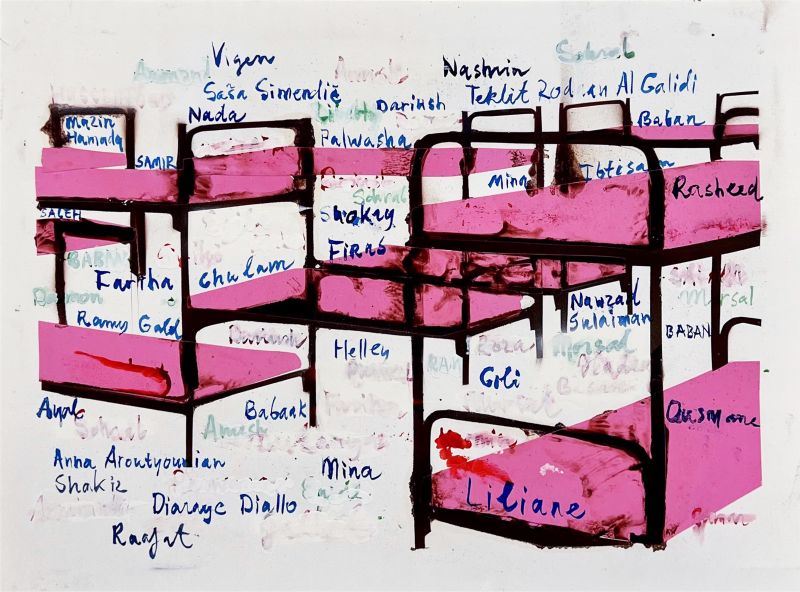 Hester Oerlemans, 'On Hold', spray paint, laser print on canvas, 160 x 120 cm, 2022.