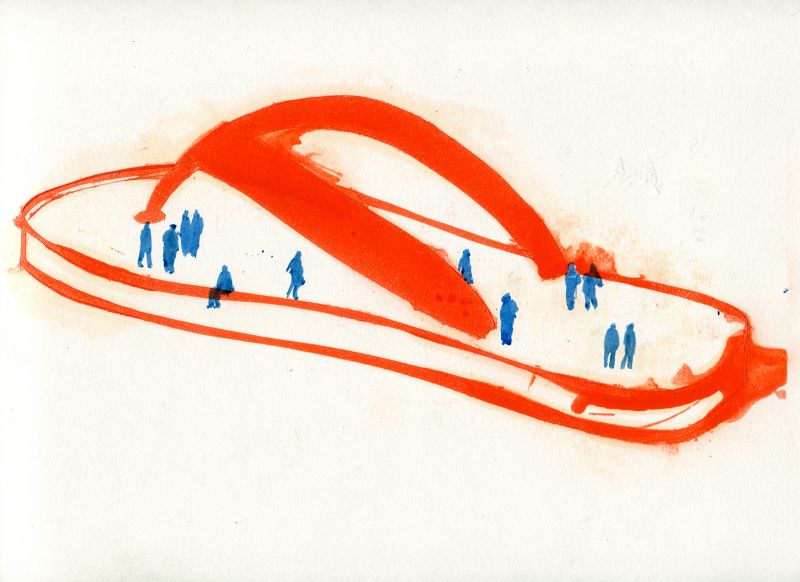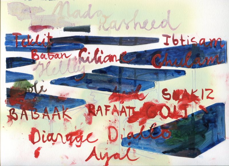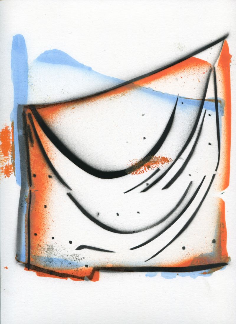 Hester Oerlemans, 'Refugee Monument' (orange), spray paint on paper, 24 x 32 cm (framed 30 x 40 cm), 2017.
