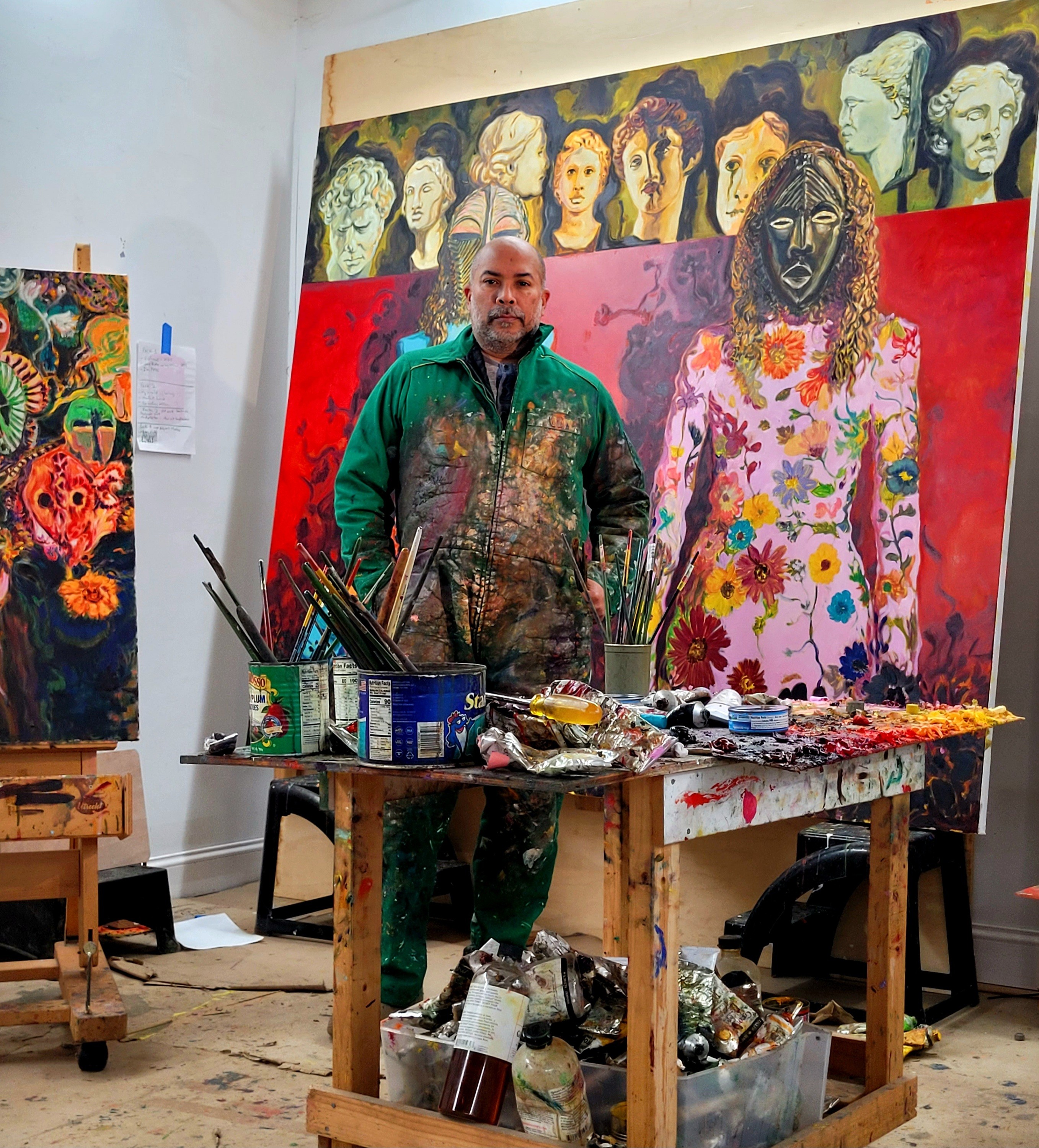 Having lived and created art in multiple countries, Mariño transcends traditional labels, using his multicultural background to inform a dynamic, multilayered painting style. His works have been exhibited in several public and private collections around the world, including Espacio 23, Miami FL, Coral Gable Museum, Miami FL, The Museu Picasso, Barcelona, Spain, Coca-Cola Foundation, Spain, The Deutsche Bank Collection NYC, The Rubin Museum NYC, ZEITZ MOCA, CapeTown RSA, La Fab, Paris, France, Museum of Anthropology of the University of British Columbia, Vancouver, Canada, ASU Arizona, USA, The 21C Museum, Kentucky, USA, El Museo del Barrio, NYC The Queen Museum, NYC, Museum Van Bommel van Dam.Venlo Holland, The Nederlandsche Bank. Ámsterdam, among others.