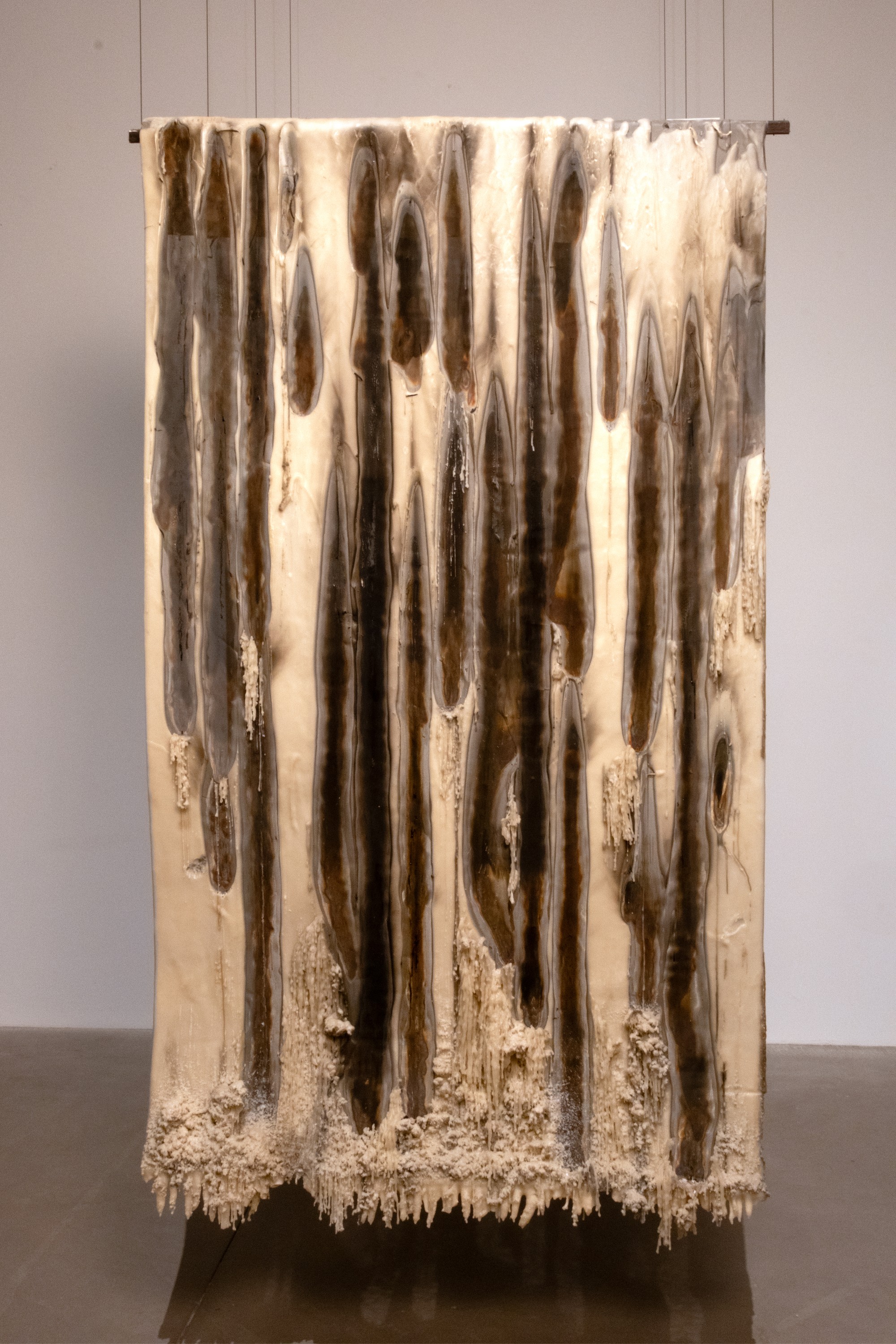 Following her first presentation at ROOF-A, titled PASSAGES in 2024, she gained international recognition with a presentation at Art Basel. Recent projects, including those realized at Château La Coste and a solo exhibition in Istanbul (Where the River Burns), mark a further evolution of her practice, in which she experiments with the combination of wax and tin.