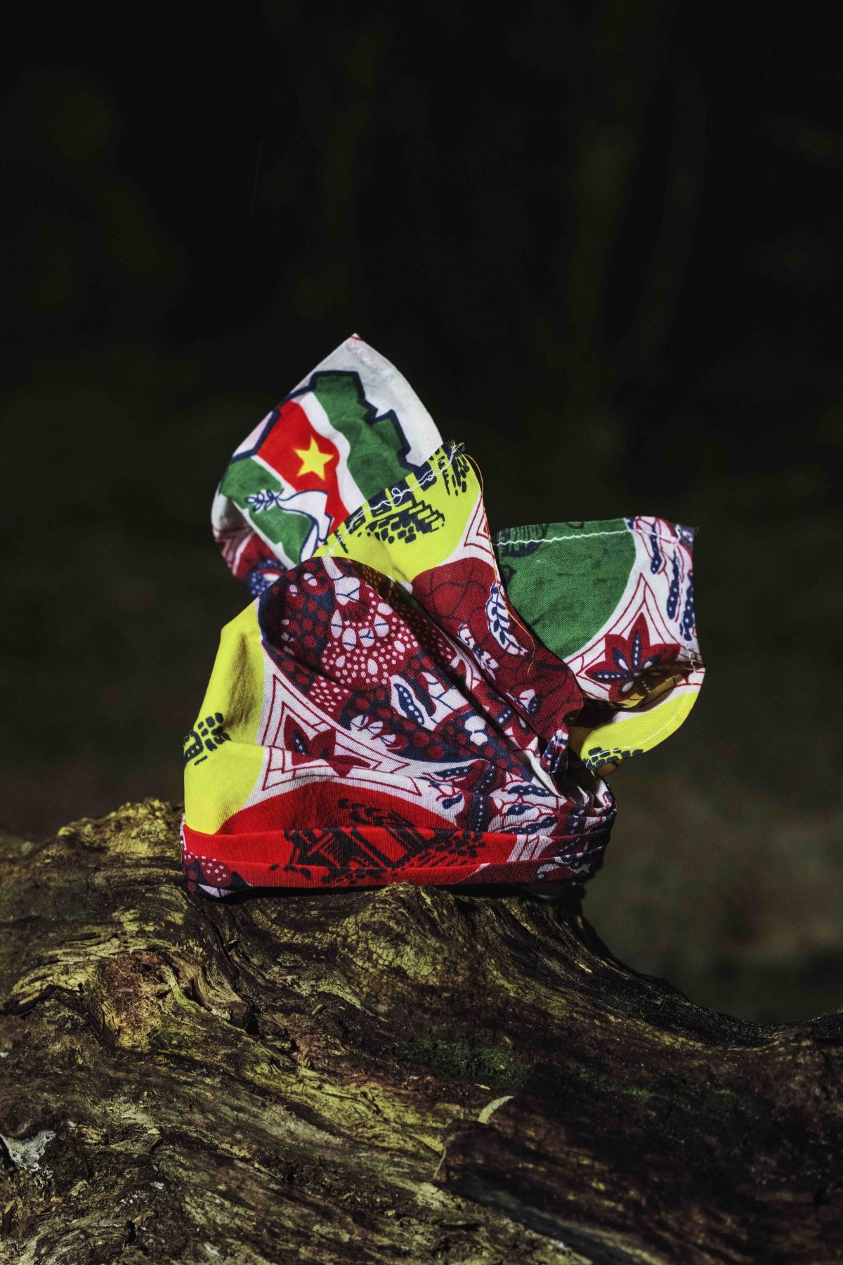 There is something else remarkable about the way Michelle works. Her approach is questioning and looking for cooperation. Although her parents' roots lie in Suriname, Michelle has never been there. By working together with people who gather and keep the Afro-Surinamese culture alive, she supplemented her photographic eye and her imagination with the knowledge and finesse of experience. She learned to fold the headscarves that said, “wait for me at the corner”, or “don't fight me”, and worked with writers who knew the Anansi stories. In this way, a book was created alongside the series of images, which capture the hand gestures, the headscarves, open spaces and silhouettes that refer to that collective past.