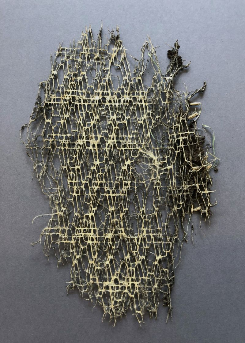 Scherer presents the underground crops and root networks of her plants as a tapestry, but she also integrates them into photo works, as a living sculpture, or as textile. For her, nature, science, art, and design are an extension of each other. To add even more depth to her work, Scherer collaborates with biologists and engineers from Delft University of Technology and Radboud University in Nijmegen.
