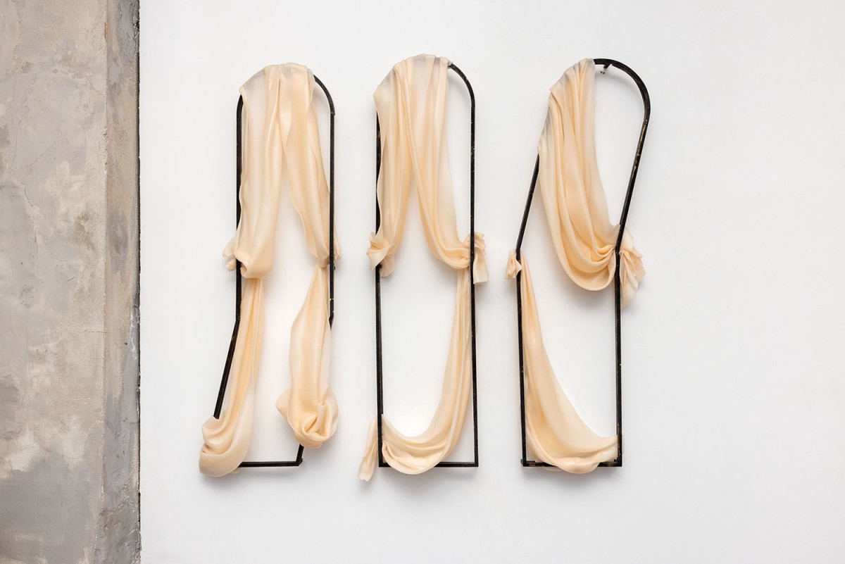 En ondanks alles dacht ik ook aan doorgaan en opbouwen. Klein, maar niet onbelangrijk detail: alle was die in het werk van Minchin van de metalen structuren smelt, wordt in een volgend werk hergebruikt. Juliette Minchin schrijft me in de aanloop naar de tentoonstelling die zij bij Roof-A in Rotterdam installeert. Ze werkt sinds vijf jaar met was, zegt ze. Op een video, die ze me opstuurt, is te zien hoe ze in haar atelier kunstig bewerkte panelen van metaal in was doopt. Het metaal wordt met behulp van een hijskraantje in een bad met warme was gedompeld en weer omhoog getrokken. De was stolt. Het procedé wordt herhaald, net zolang tot de structuren in de panelen dik en zalvig zijn geworden. Ze hebben de kleur van blanke vla.