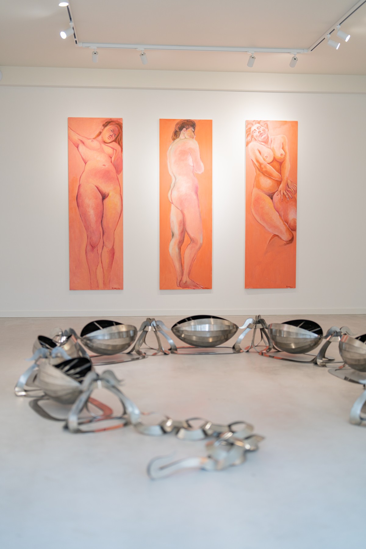 Ook wie groot genoeg is om deze reuzenketting te dragen heeft het blijkbaar nog nodig zich tot de tanden toe te wapenen. Toch hangt in galerie Roof-A ook een drietal Venusschilderijen van menselijke maat in warmblozend roze tinten. Lemos maakte ze speciaal voor deze presentatie. Want in een ideale wereld zouden vrouwen hun wapens van genegenheid natuurlijk niet nodig hebben. De ketting in Rotterdam biedt alvast hoop: ze is van het slot, alsof hier iemand de ketenen zojuist achteloos heeft afgeworpen.