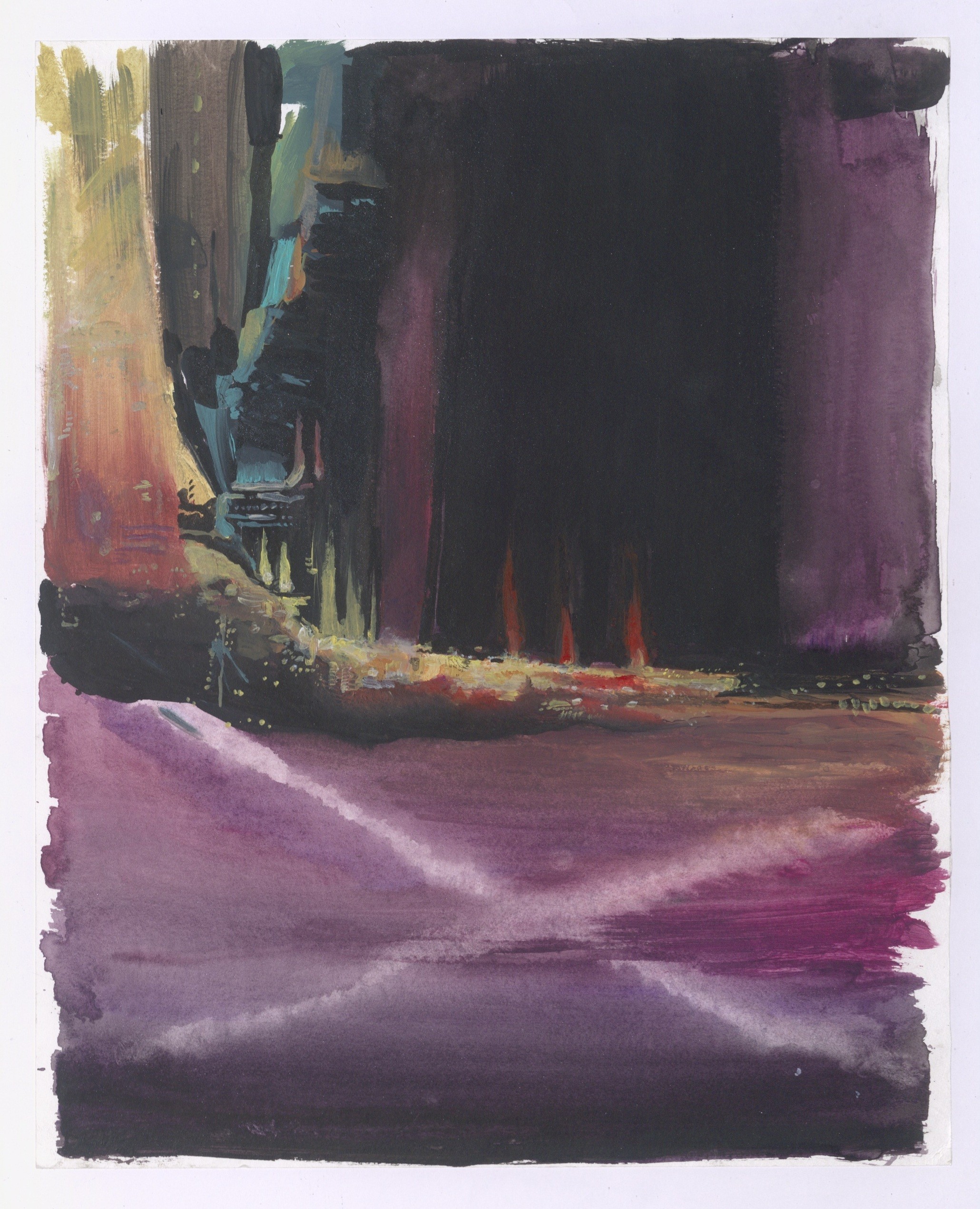 Het inderdaad licht op het noorden, een plek waar ik uit het raam kan kijken. Een mentale ‘nietsruimte’. Het moet niet te geïsoleerd zijn van de buitenwereld, maar ook een plek waar ik ongestoord kan doorwerken. Ik ben er zo vroeg mogelijk - als de dag begint en me dingen te binnen vallen- en ik probeer de hele dag met tussenpozen te werken. Lange schilderperiodes zijn 's avonds of in het weekend. Afleiding ligt er wel op de loer, dus ik betrap mezelf er vaak op dat ik iets doe wat ik helemaal niet van plan was.