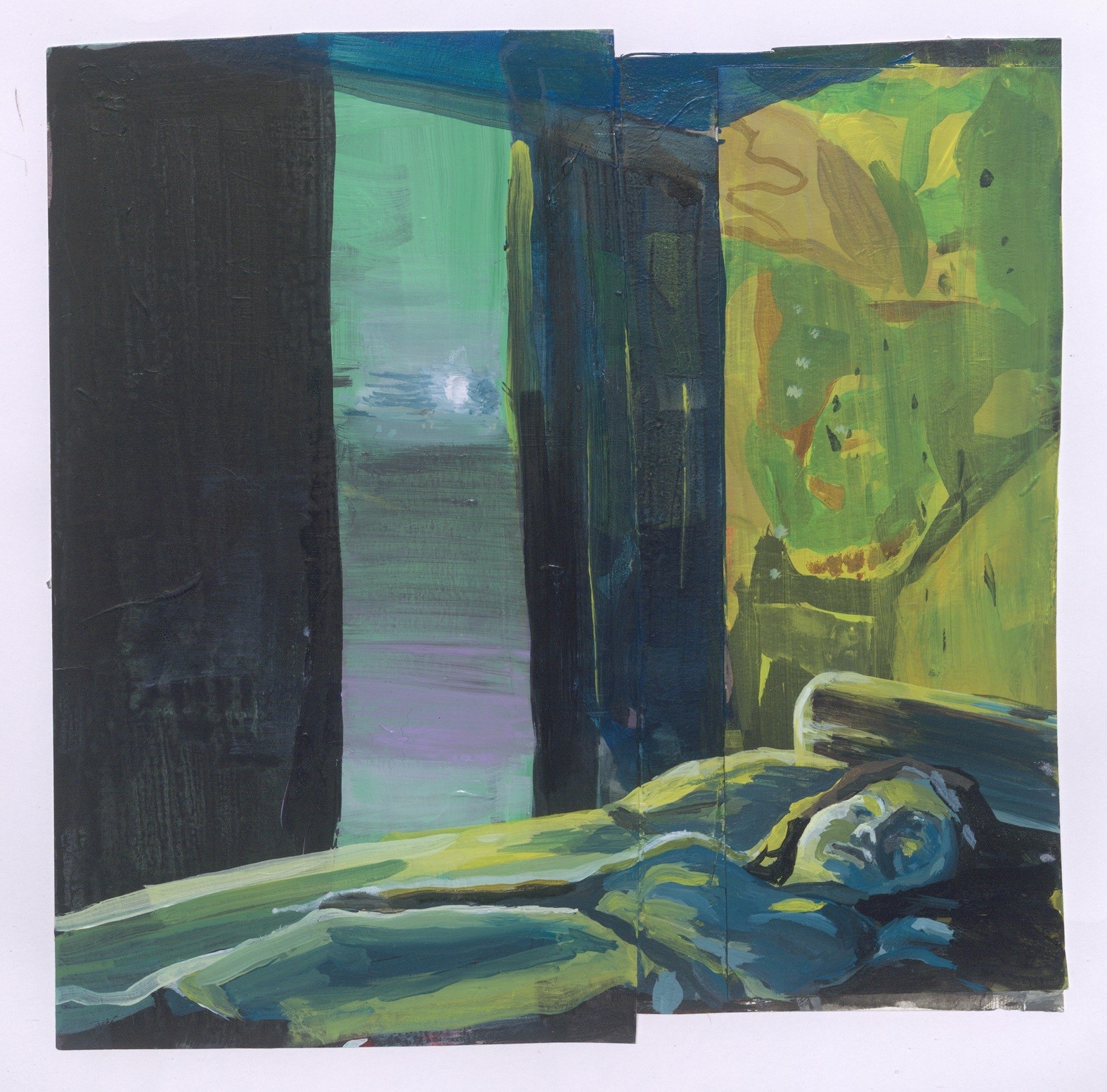 Ik ben pas een paar jaar geleden begonnen met schilderen, daarvoor was ik tekenaar, maakte ik prints , litho’s, etsen, hout- en linosneden. Tijdens mijn BA aan de KABK maakte ik vooral korte films en animaties. Ik ben pas begonnen met schilderen tijdens de lockdowns. Net als iedereen zat ik de hele dag thuis, het is eigenlijk begonnen uit pure verveling. Ik had nooit gedacht dat ik ooit zou schilderen. Ik heb mezelf daarmee enorm verrast. Daardoor was ik op een kritiek punt in mijn carrière beland. De Rijks representerende een plek waar ik kon experimenteren en mij volledig kon richten op de ontwikkeling van mijn artistieke praktijk.