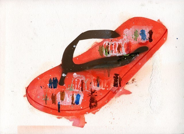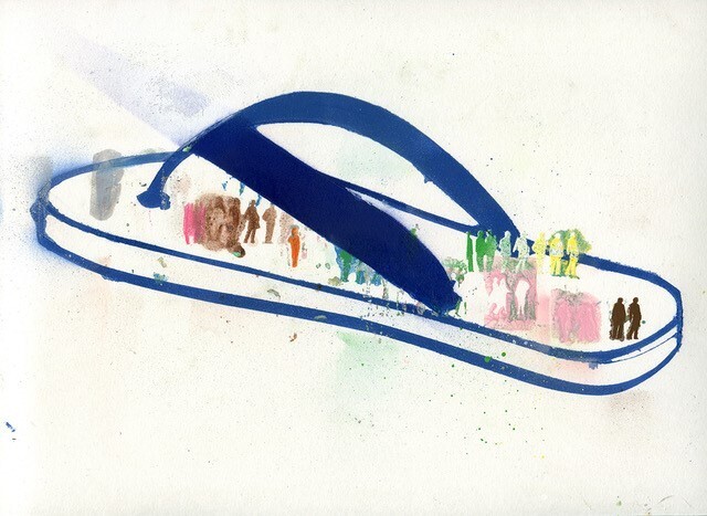 Hester Oerlemans, Refugee monument, 40 x 30 cm. (framed) Spraypaint, ink on paper