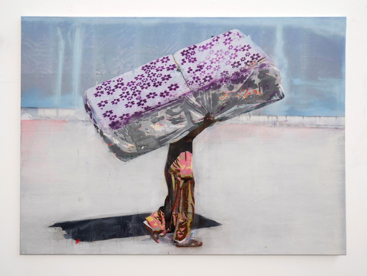 Hester Oerlemans, 'On Hold', spray paint, laser print on canvas, 160 x 120 cm, 2022.
