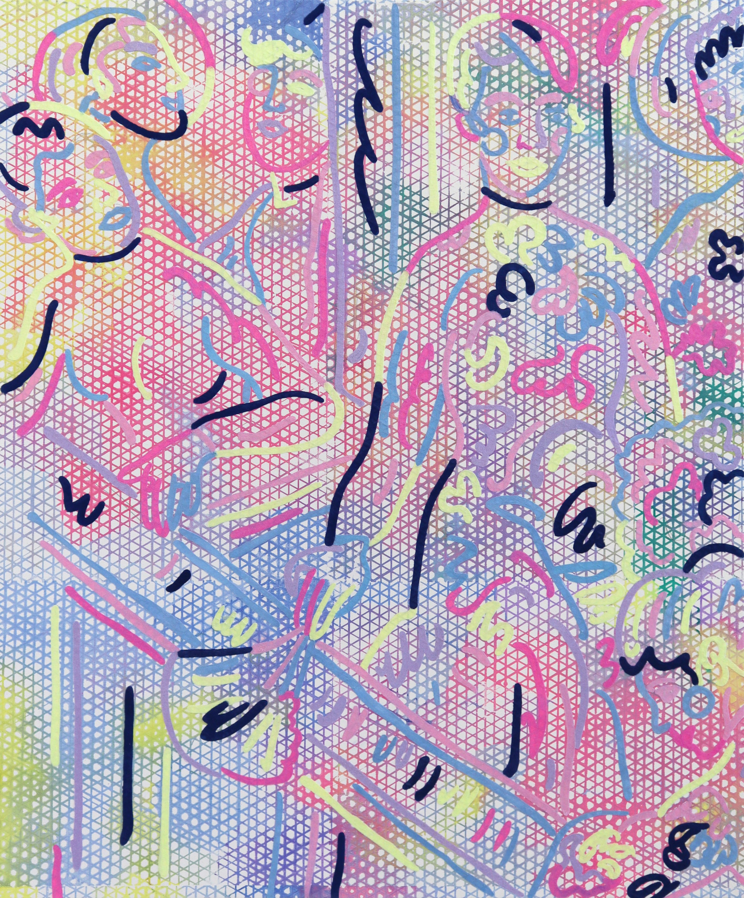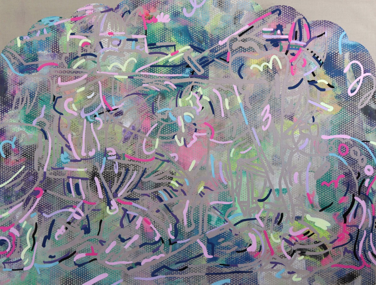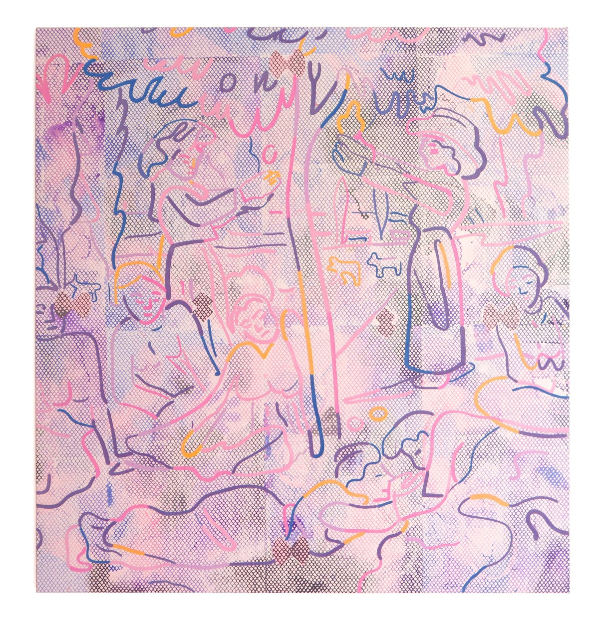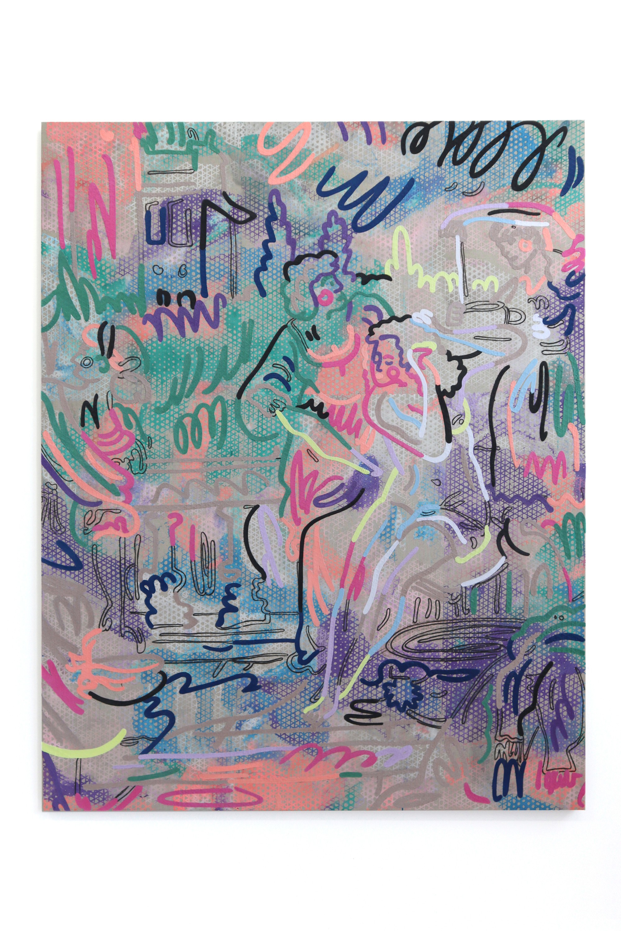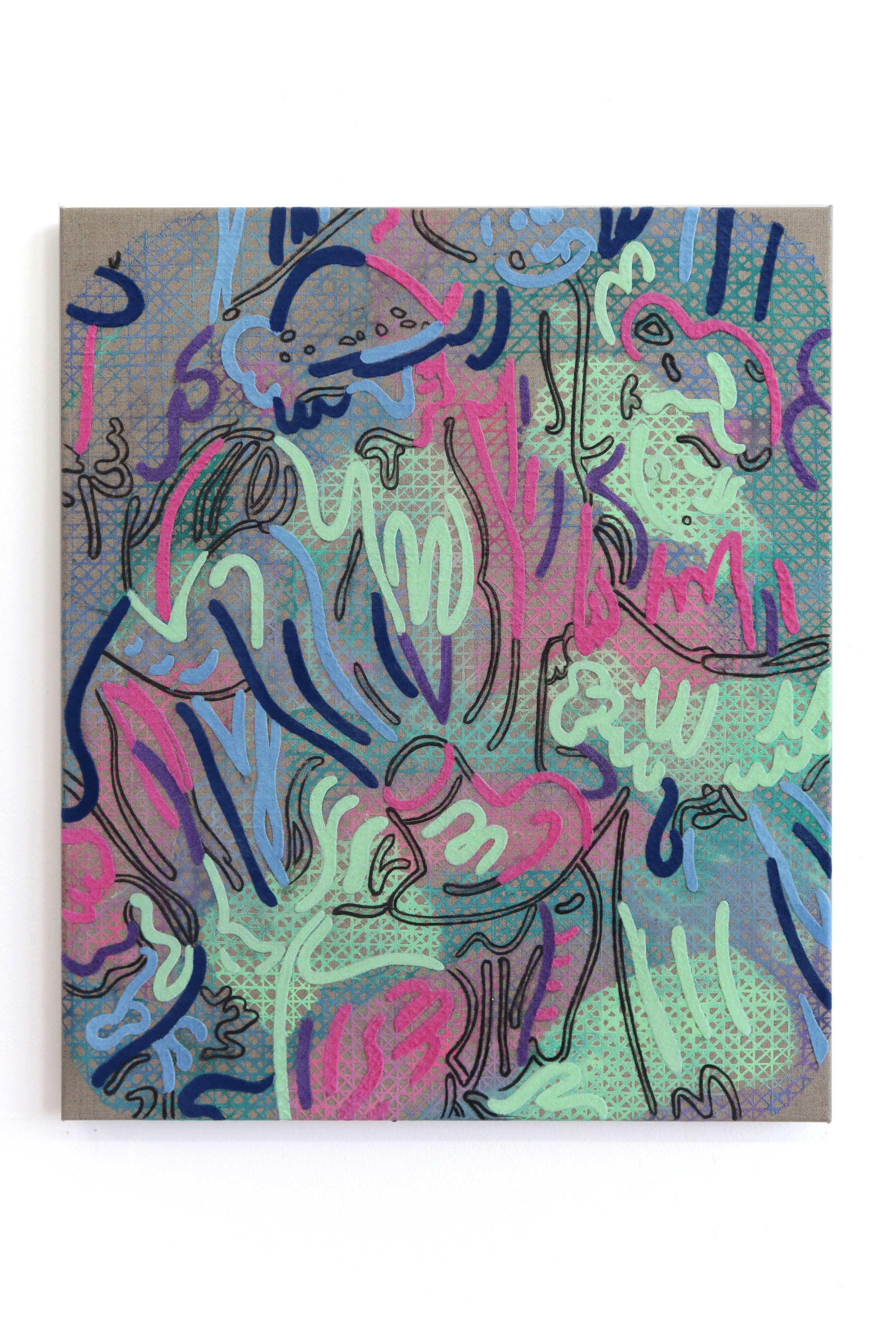 Vera Gulikers, 'Threadingdoek: Little Wedding, Natalia Goncharova', puff-ink and flock on canvas, 200 x 250 cm, 2020.