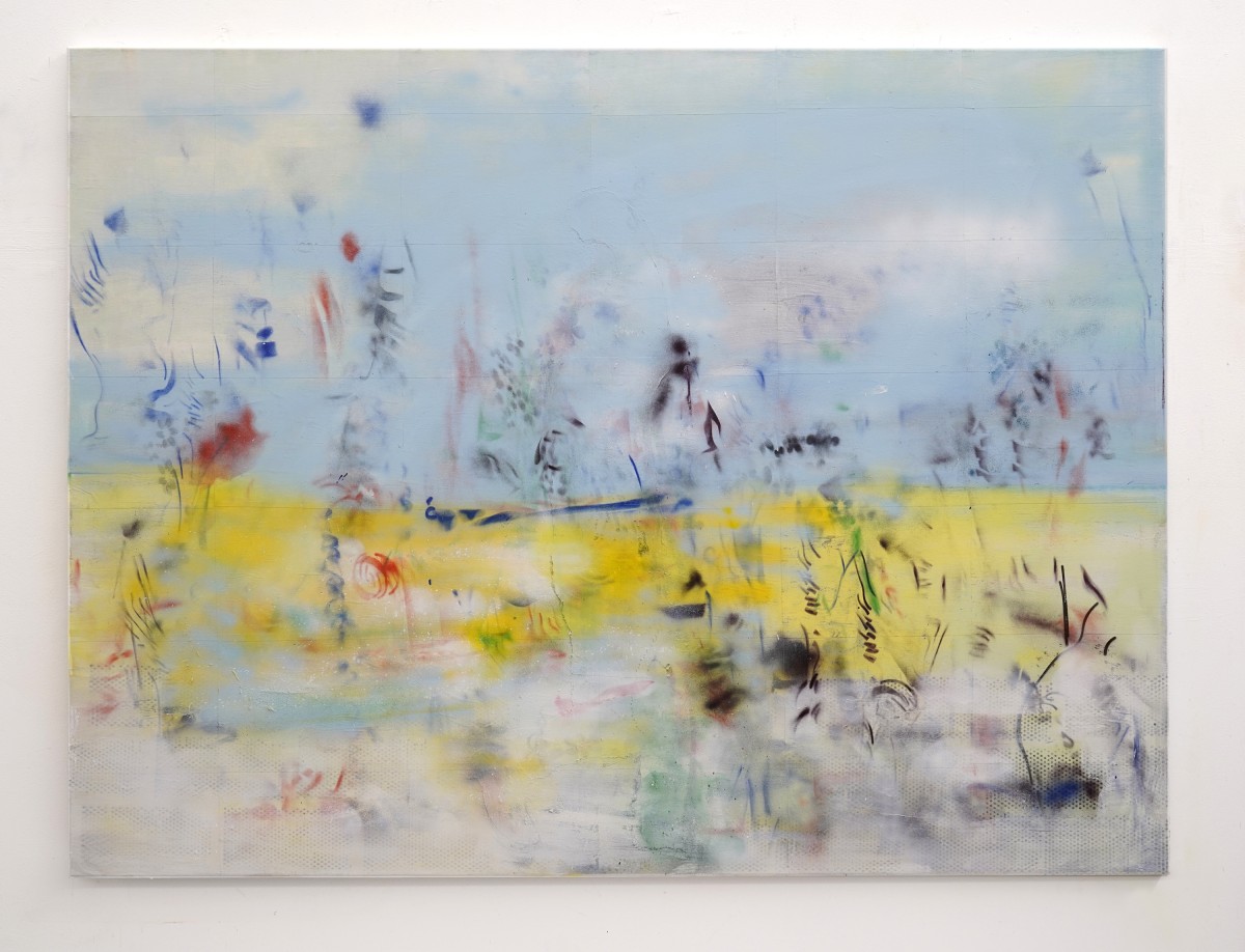 Hester Oerlemans, Untitled, 2025, 120 x 160 cm, laserprints, spraypaint, acrylverf op canvas