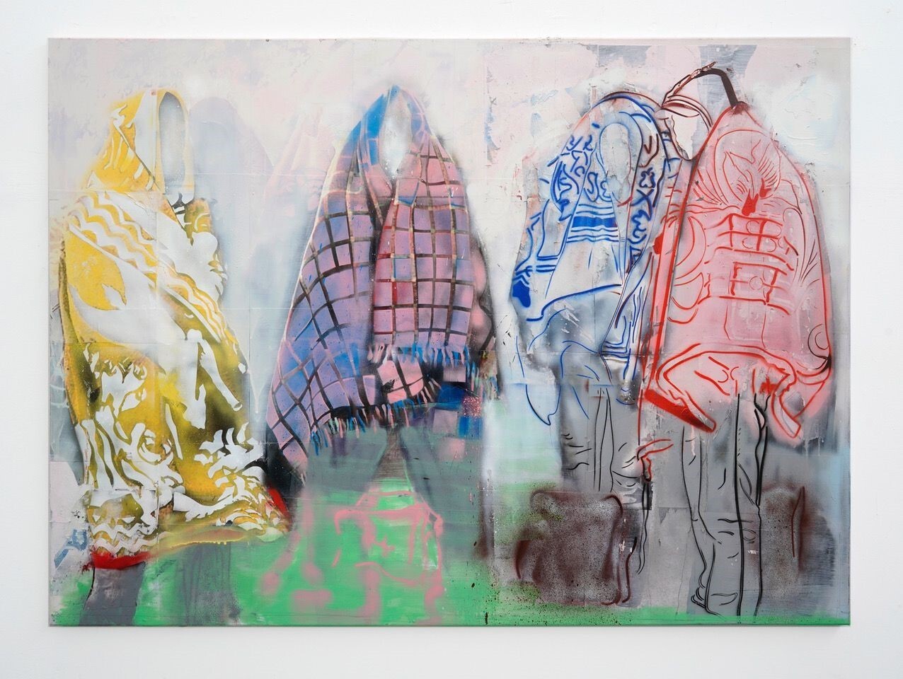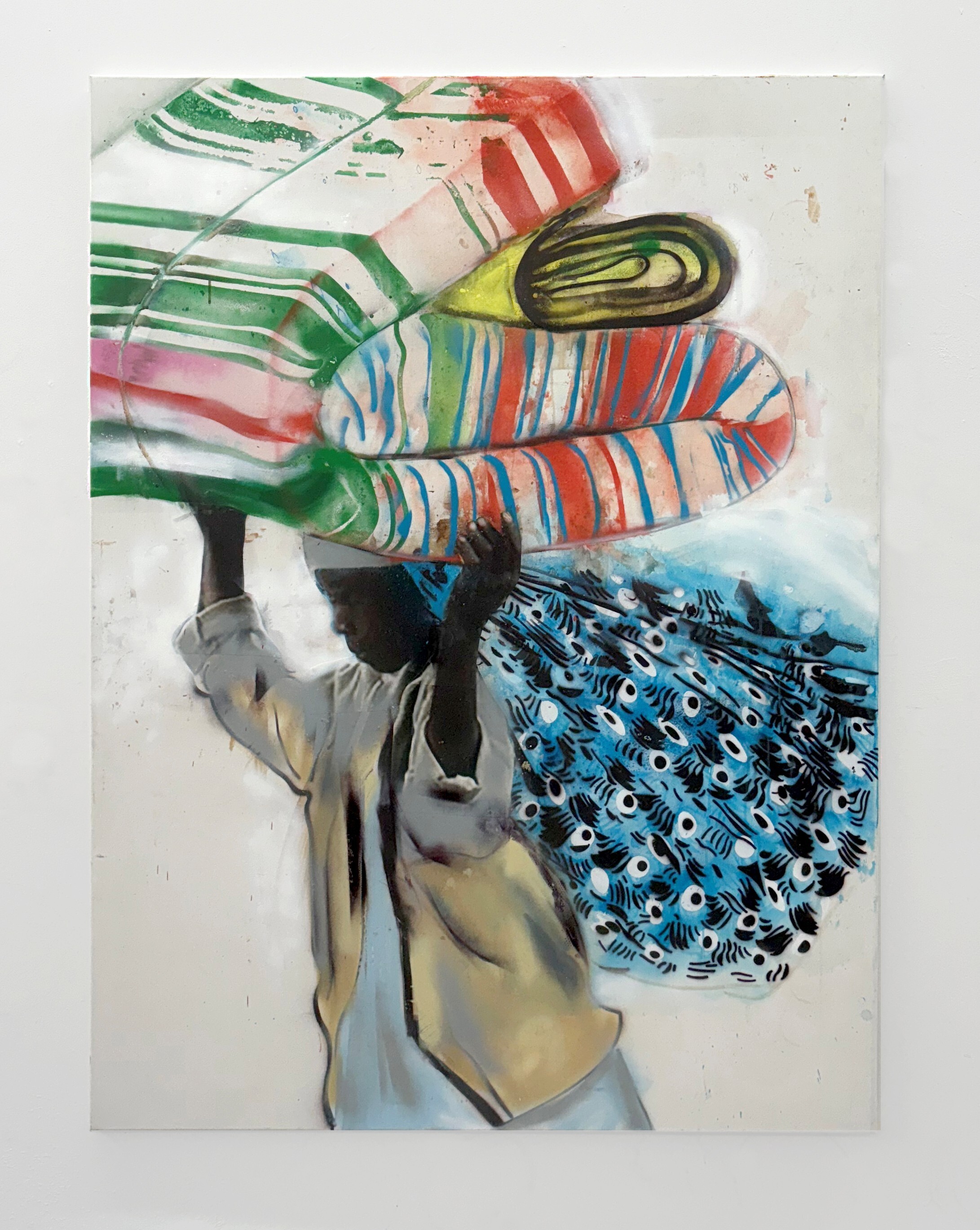Hester Oerlemans, Welcome, 2025, 160 x 120 cm, laserprints, spraypaint, acrylverf op canvas