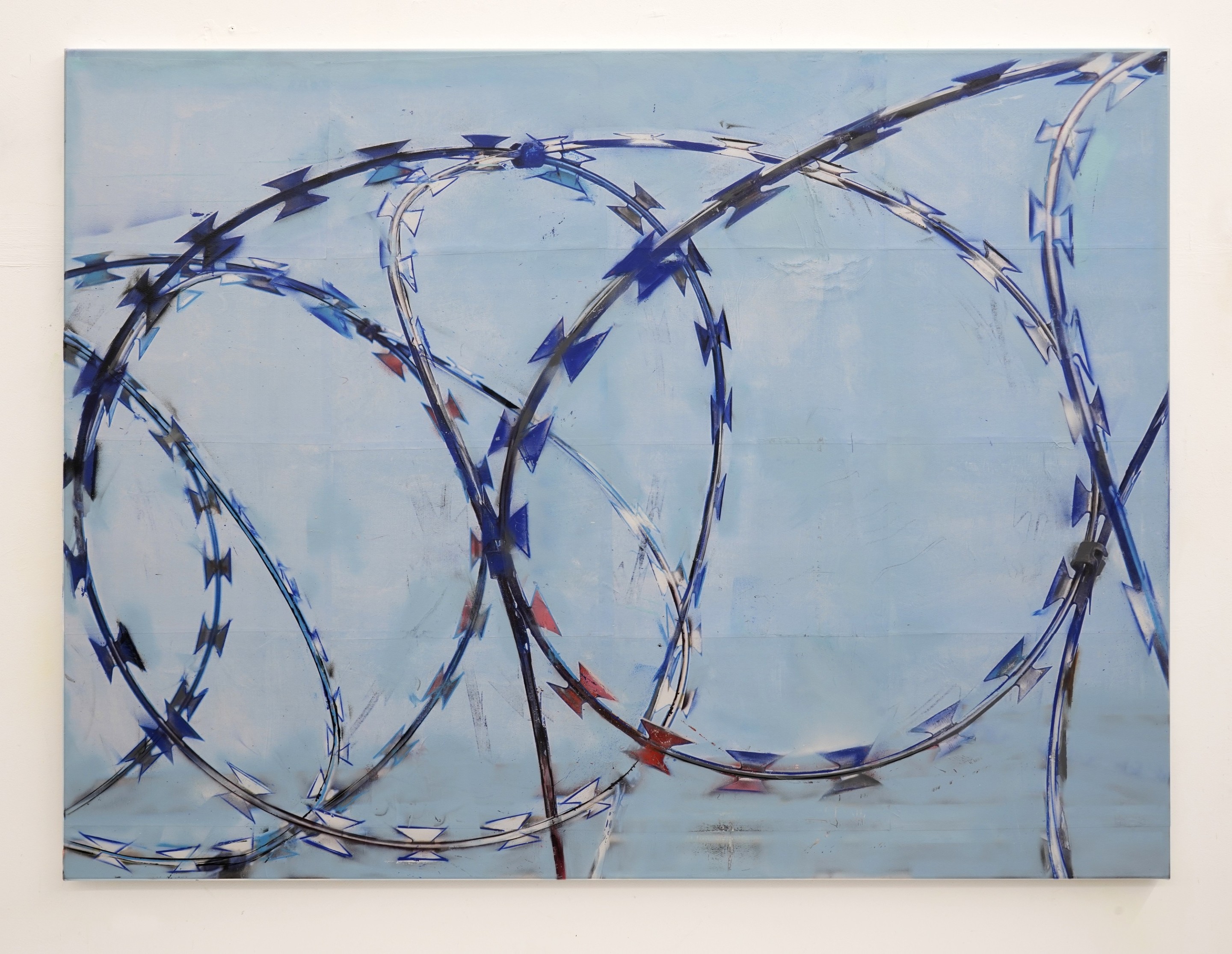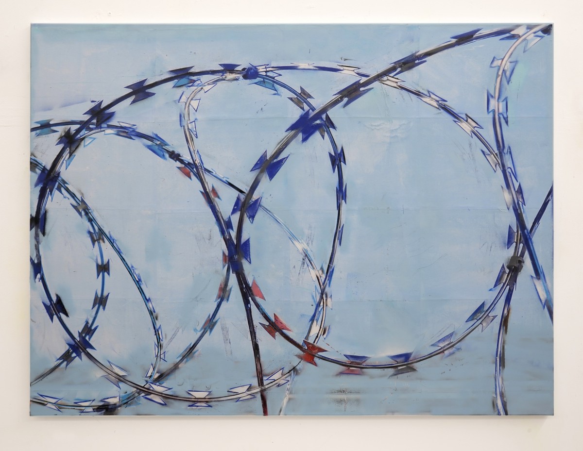 Hester Oerlemans, Barbed Wire, 2025, 160 x 120 cm, laserprints, spraypaint, acrylverf op canvas