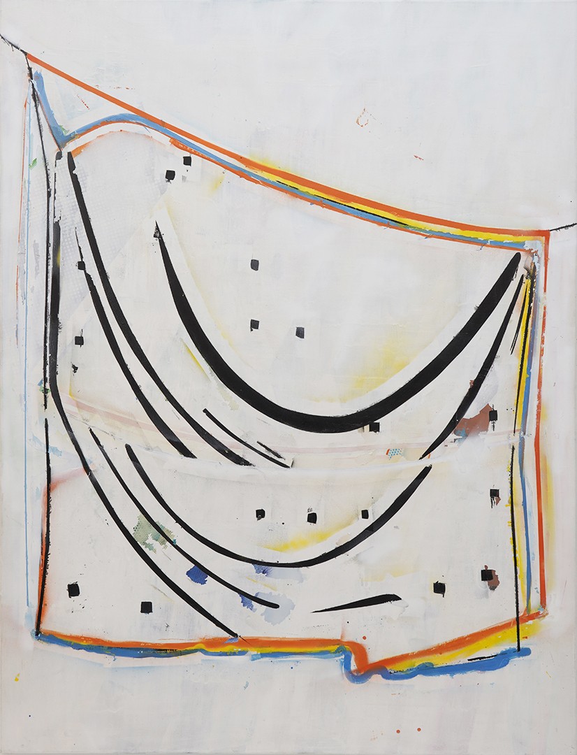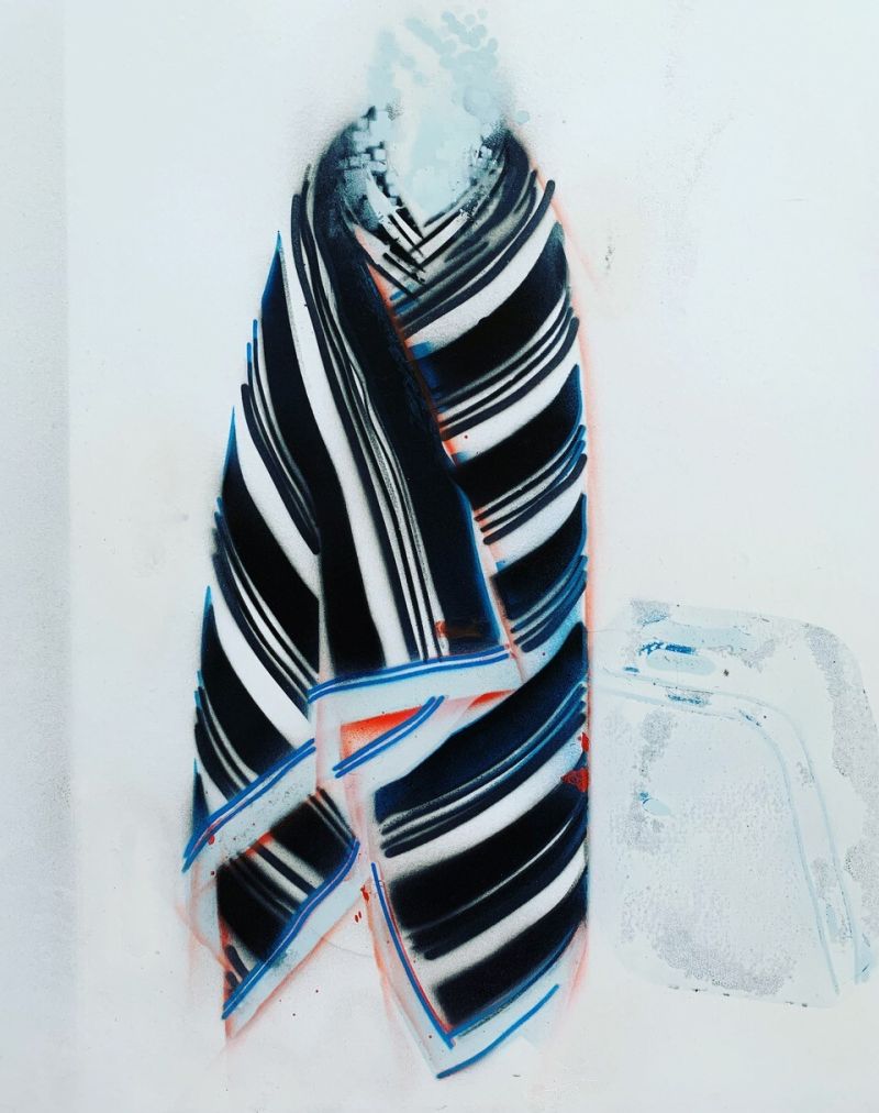 Hester Oerlemans, Titel: Sniper Curtains (01) 2019, 170 x 130 cm, spraypaint op canvas