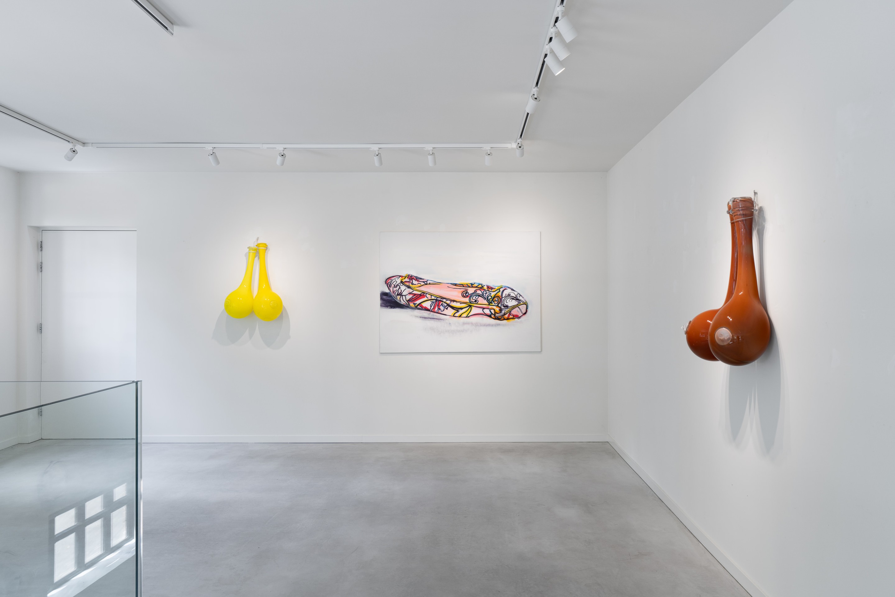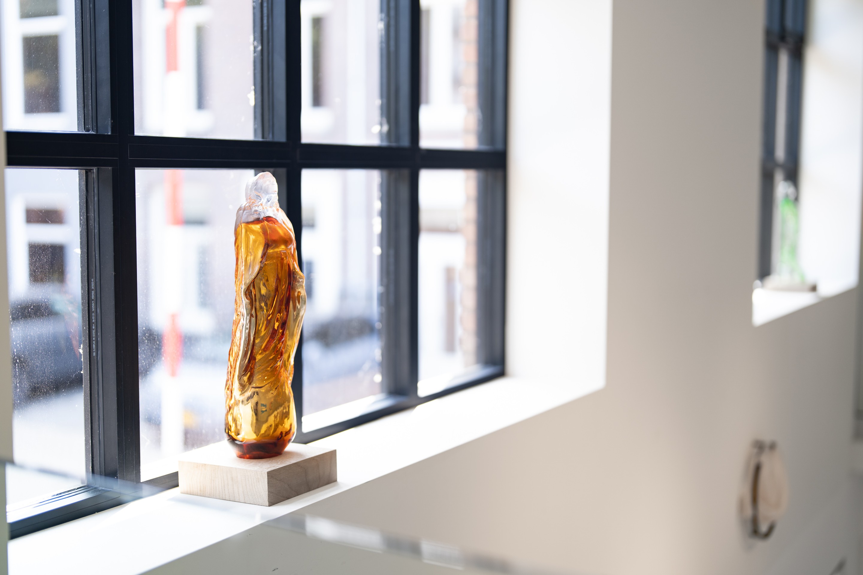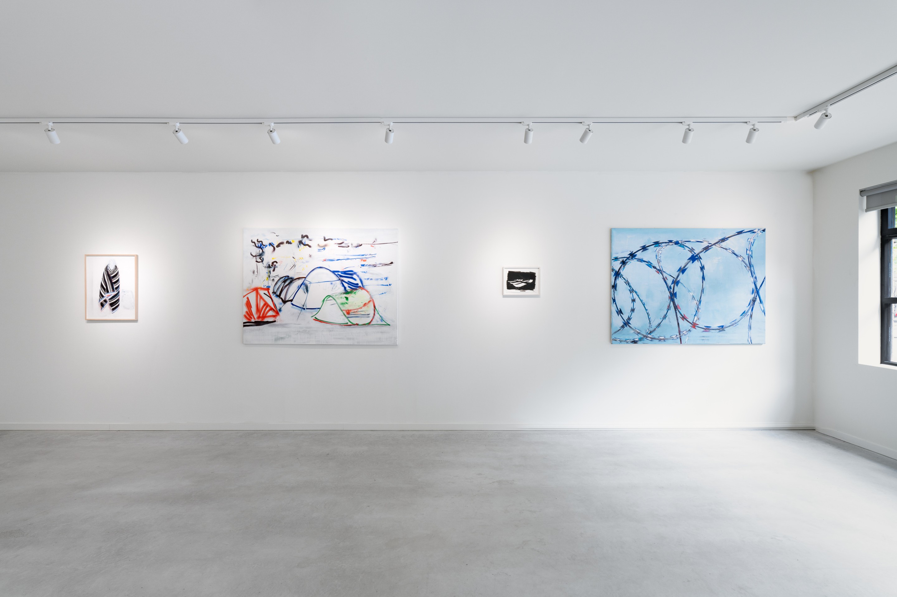 Ook bij ROOF-A heeft ze in een tweede ruimte een presentatie gecreëerd waarin ze een dialoog aangaat met collega- en bevriende kunstenaars Maria Roosen en Gijs Assmann. De iconische borstenparen van Maria Roosen als gevers van leven, de Maria/Muze/Madonna van Gijs Assmann als bron van kracht en als belofte voor de toekomst en een selectie schilderijen van Hester Oerlemans waarin zij in eenvoudige composities de fragiliteit en de kracht van een bestaan dat door migratie en globalisering op drift is geraakt verbeeldt.