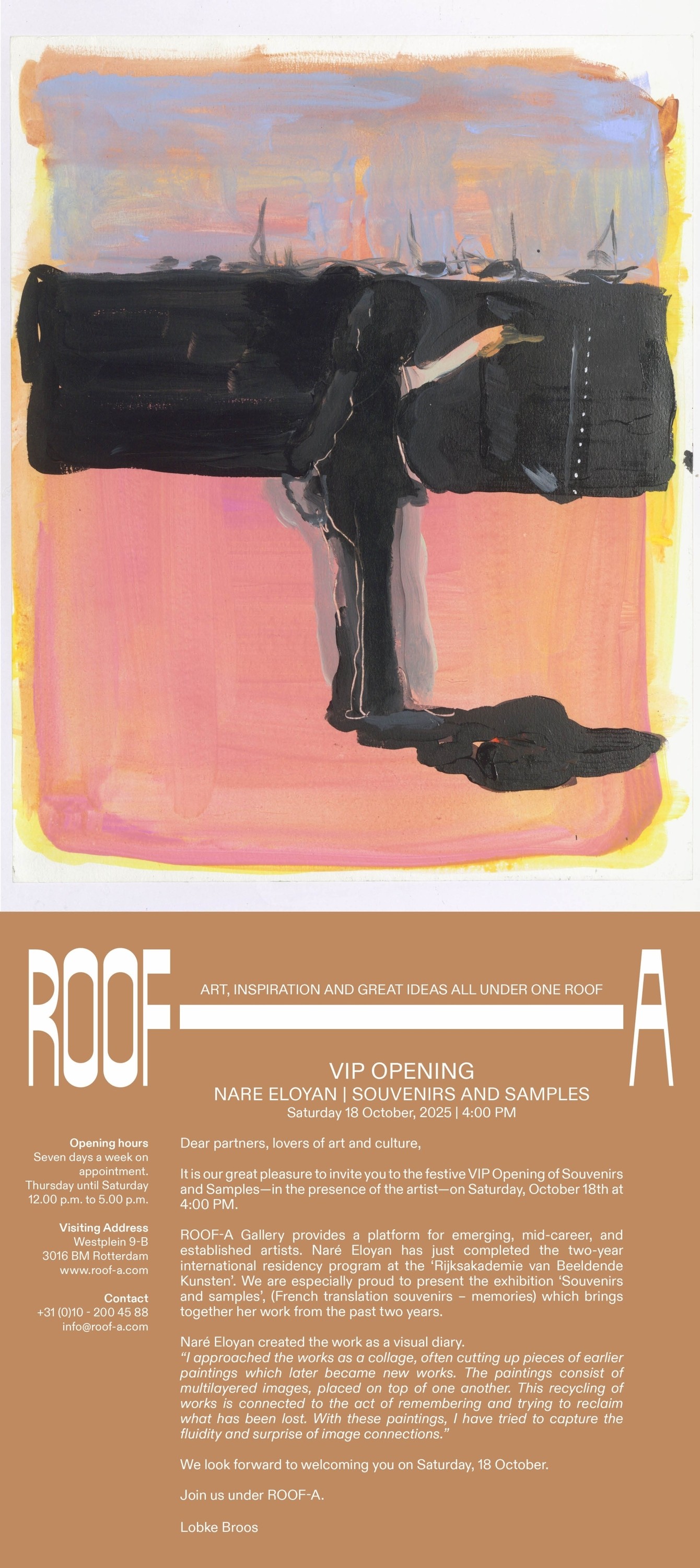 ROOF-A Gallery biedt een podium voor opkomende, mid-career en gevestigde kunstenaars. Naré Eloyan heeft zojuist het tweejarige internationale residentieprogramma aan de Rijksakademie van Beeldende Kunsten in Amsterdam afgerond. Terug in haar eigen atelier hebben wij een selectie gemaakt van haar werk voor de tentoonstelling in de galerie.